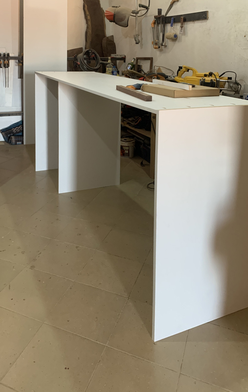 - Built-in seating on the reverse side of the desk.